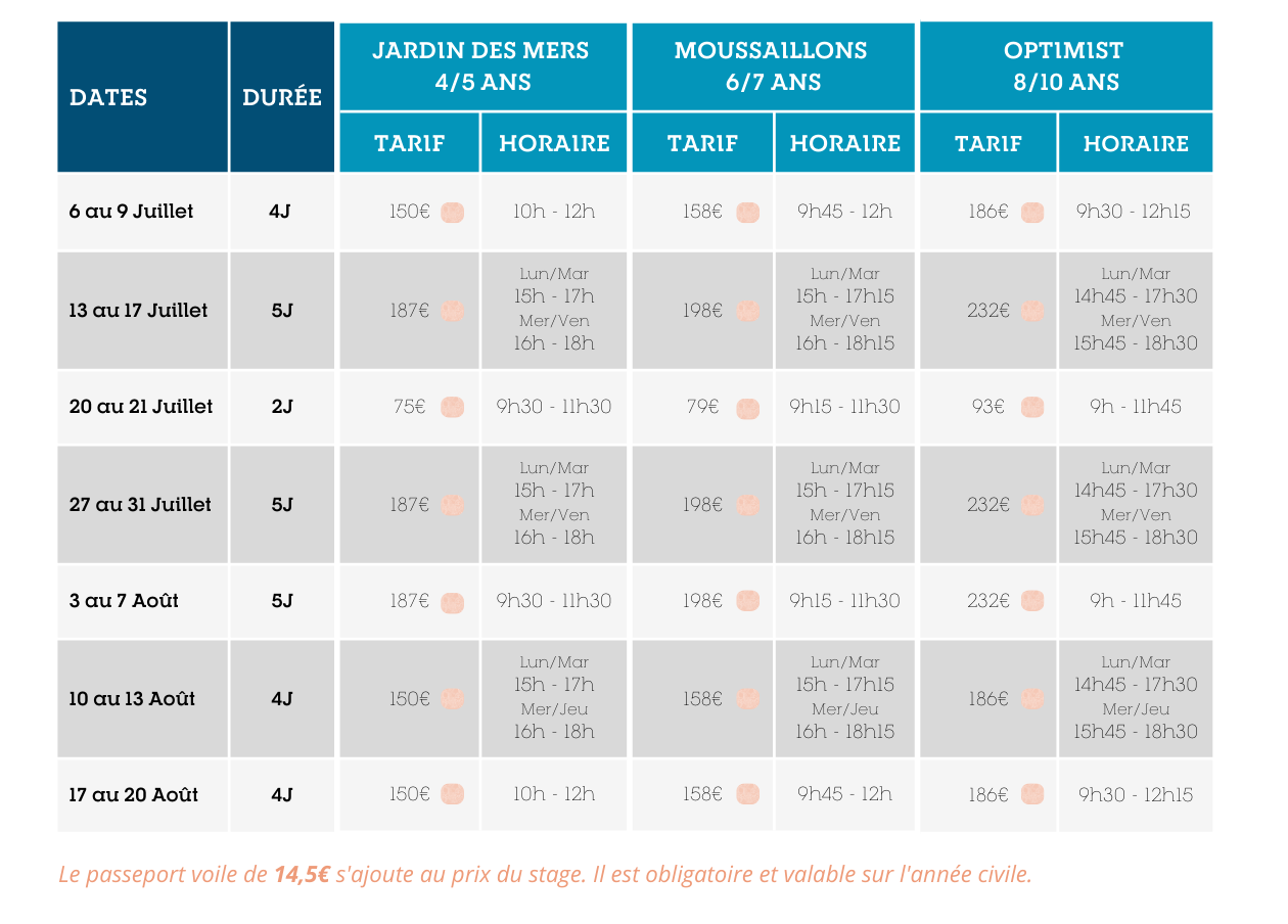 Vos enfants partent en douceur à la conquête de la mer. Tout en jouant, ils apprennent les rudiments de la navigation à bord d’un Optimist. Les enfants se retrouvent rapidement en situation de réussite et peuvent profiter pleinement des joies de la glisse. Notre pédagogie est centrée sur l’aspect ludique de l’activité et s’adapte à l’âge de chacun.